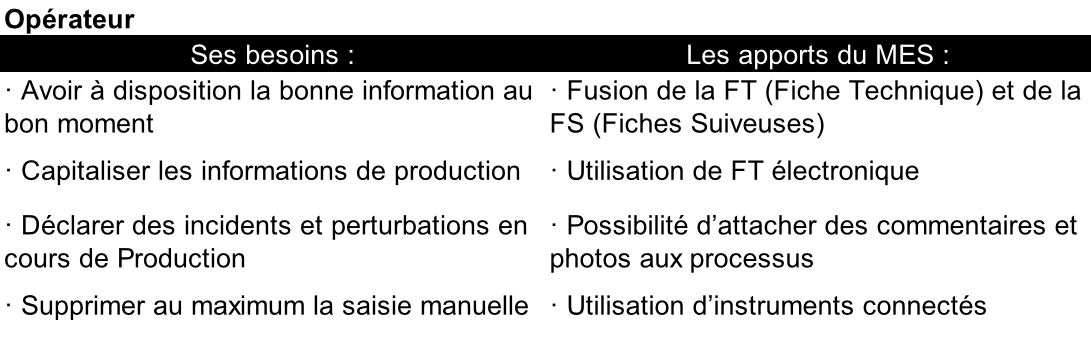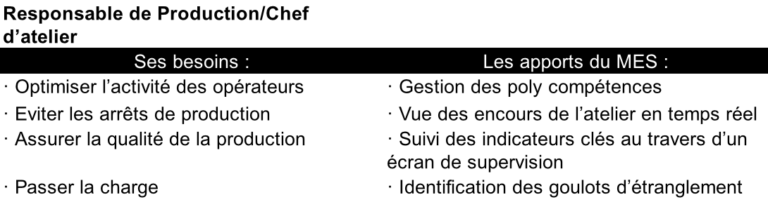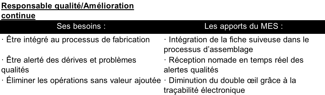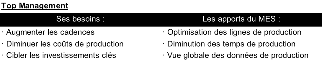 Une fois intégré, le MES va offrir de nombreux avantages pour les fonctions transverses, ainsi que pour les fonctions de management :